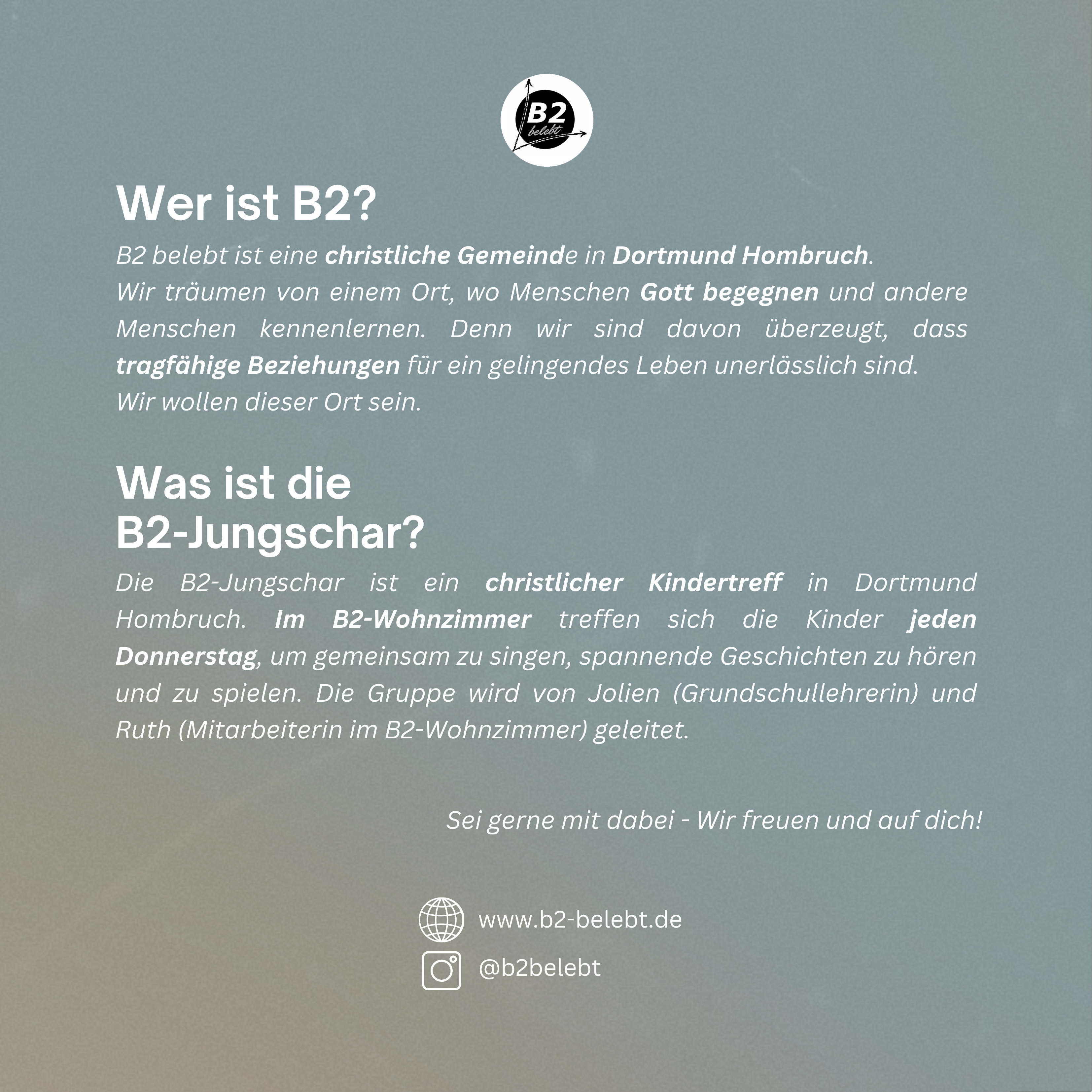 Junias ist Grundschullehrer und verheiratet mit Britta. Gemeinsam haben sie fünf Kinder und wohnen in Dortmund-Hombruch.